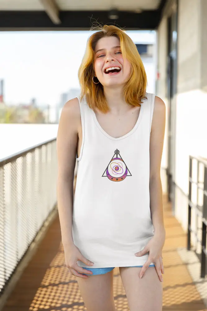 Crafted with premium materials, this tank top prioritizes your comfort during long hours of dancing or exploration. The breathable fabric and modern cut offer a relaxed yet flattering fit, making it a versatile staple for festivals, summer parties, or casual urban wear. The Quantum Pulse White Top Tank Top is more than just a garment; it is a symbol of boldness and belonging. By wearing it, you showcase your connection to a community that values creativity, movement, and the power of sound. Refresh your wardrobe with this essential piece and let your energy shine through.